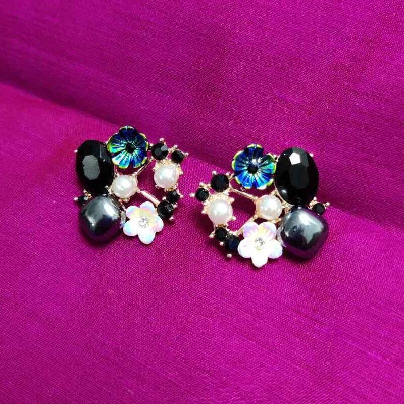 A Designer Stud Earrings Glass Pearl Black